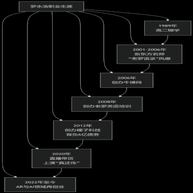 羅永浩是一位非常復雜且充滿爭議的公眾人物,他身上貼著很多標簽:連續創業者、理想主義者、演說家、網紅主播,甚至被稱為“行業冥燈”。要全面了解他,我們可以從他的經歷、性格和公眾形象幾個方面來看。 為了讓你能快速了解他職業生涯中的重要節點,我梳理了一張圖表:
